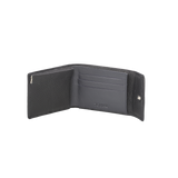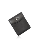 Black pebbled genuine leather wallet with snap-button closure. Features 3 card slots, 1 bill compartment, and a secure zip coin pocket, combining classic style with practical storage. |