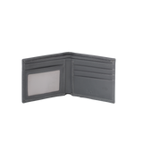 Blending style and durability, this bi-fold wallet pairs a grey genuine leather frame with a multicolor striped woven fabric exterior. The interior, finished in matching grey leather, includes 3 card slots, 2 slip pockets, 1 ID window, and a full-length bill compartment for everyday essentials.